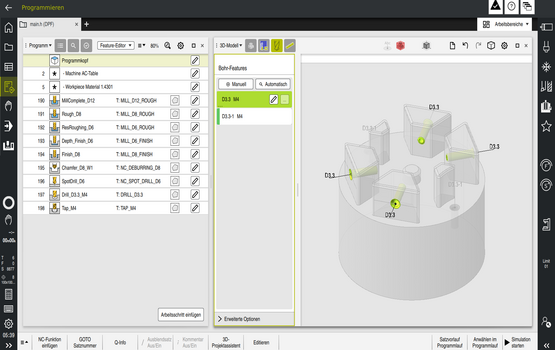vTNC7 est un logiciel pour PC qui permet de créer des programmes CN pour les commandes numériques HEIDENHAIN et qui promet de révolutionner l'aide contextuelle dont bénéficient les utilisateurs, grâce à son chatbot IA. Avec Feature Based Programming, ce logiciel propose en outre une toute nouvelle fonction, capable de générer un programme en langage Klartext à partir de données de CAO qui auront été automatiquement extraites à partir de modèles 3D. Le nouveau convertisseur Klartext va lui aussi plus loin, puisqu'il est désormais capable de générer automatiquement des programmes CN qui sont exécutables sur des versions de CN antérieures à la TNC7, même lorsque celles-ci ne disposent pas des mêmes options avancées.